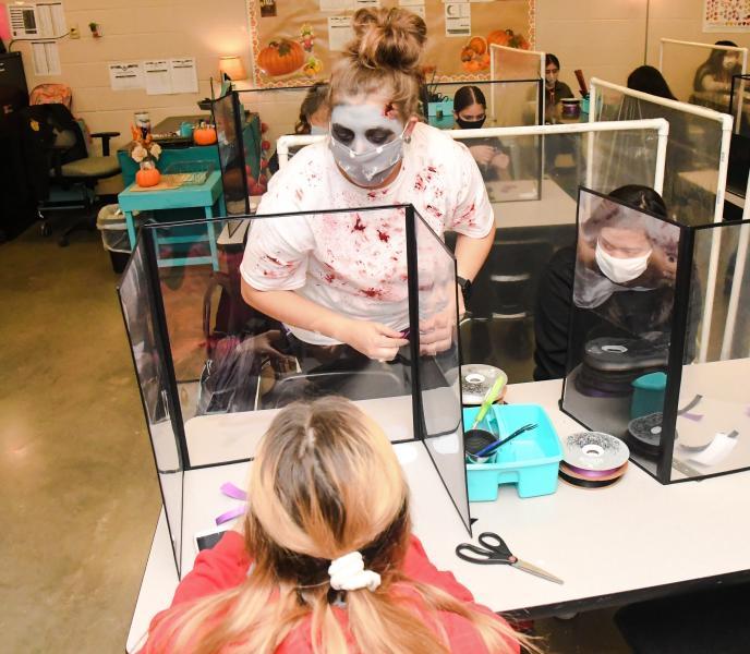 San Marcos High School's Floral Design Class students made Homecoming mums this week. The class is taught by Fallon Drennan. San Marcos' Homecoming game is Saturday at 2 p.m. at Rattler Stadium.