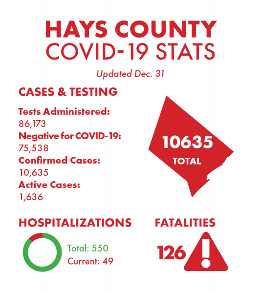 There are currently 49 county residents hospitalized by COVID-19 and there have been 550 total hospitalizations as of Thursday. Some patients hospitalized by COVID-19 are in hospitals outside of Hays County but are included in the county’s numbers if they reside within the county, the local health department said.