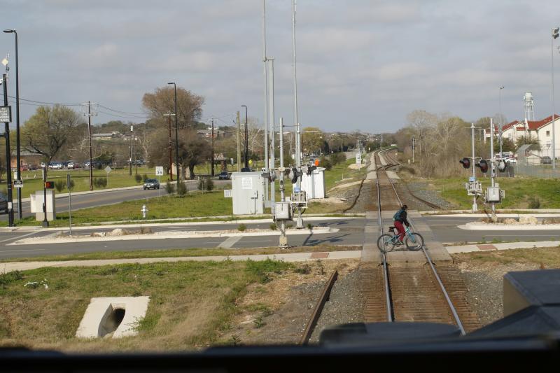 Almost immediately after the locomotive pulled away from the Amtrak platform just south of the Guadalupe Street crossing, Rodriguez saw motorists racing the crossing arms. Two cars went across the LBJ Street crossing while the bars lowered. One pedestrian walked briskly across the tracks at Hopkins Street near the river after the lights began flashing.