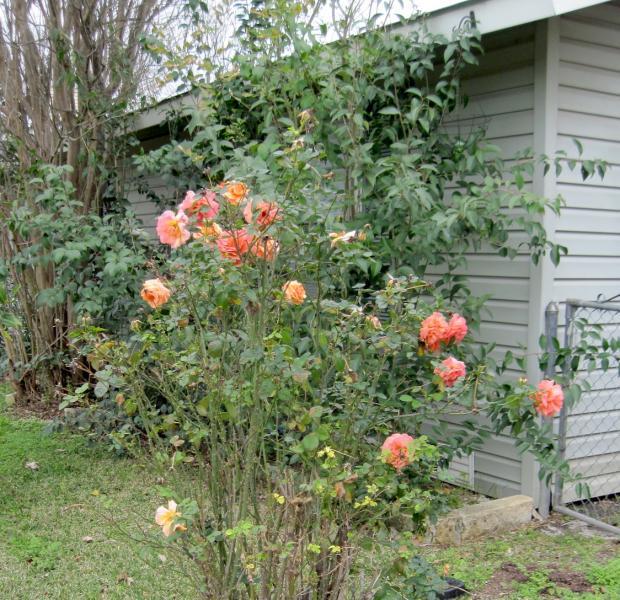 After a wet winter, this rose bush blooms even before spring begins.