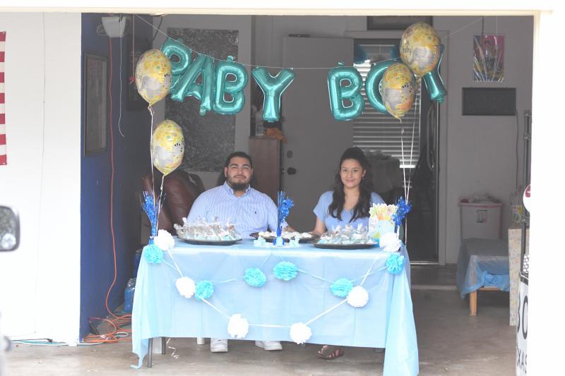 Cars drove by the shower on Franklin Drive, dropped off gifts and grabbed sweets from Jason Pena and Alynda Serna, pictured below. Daily Record photos by Gerald Castillo