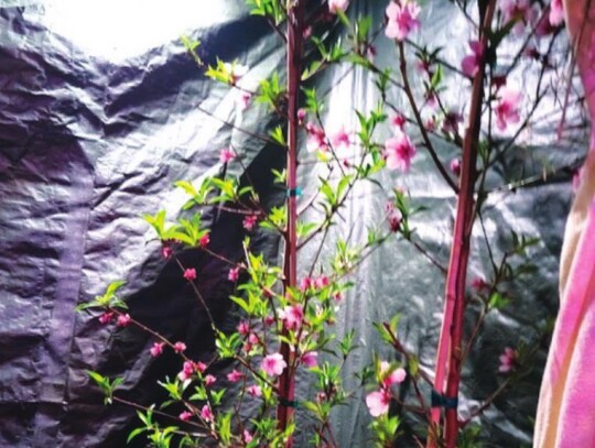 Margaret Lindsey sent a photograph with a bonus: a Monarch butterfly visiting Mexican plum tree blossoms in her yard. Charles Peralez, Spring Lake Garden Club’s president, sent a photo of two peach trees purchased in January and sheltered in a “room” made by hanging tarps in his shed with grow lights and a small heater. After a two-day power failure, the sapling trees lost leaves and flowers, but put out new leaves about a week after the freeze.