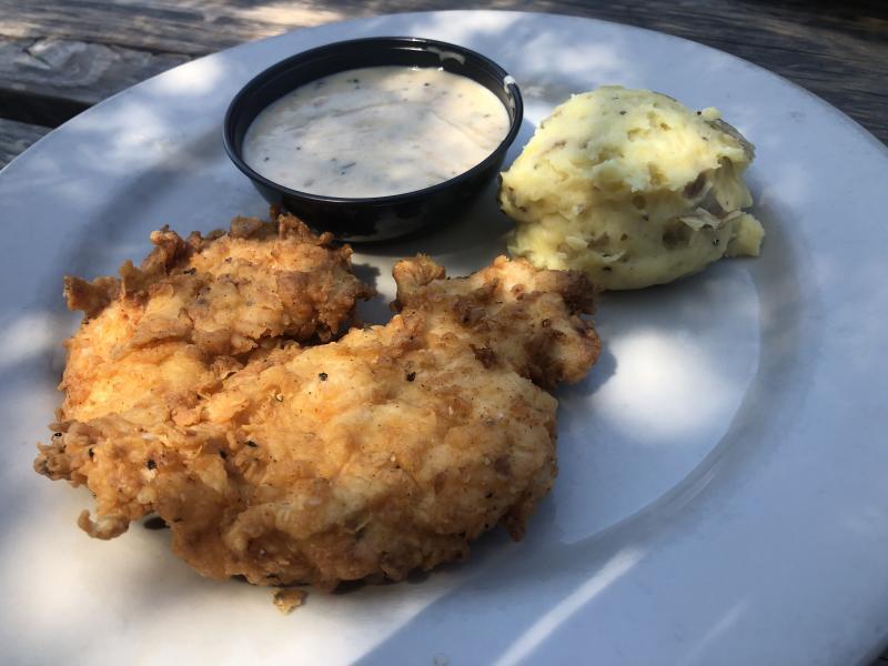 On the day of our visit, I set my taste buds on the chicken fried chicken. The tender white meat portion came out perfectly cooked, well-seasoned and delicious. The batter was so good and with a drizzle of jalapeno gravy over the top of it — food nirvana. My sides were none other than mashed potatoes and spinach.