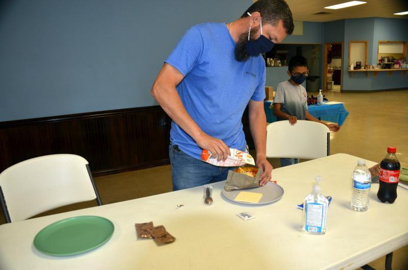 Below, Michael Flores worked to turn his MRE into a delectable treat.