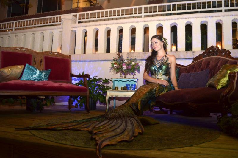 Angela Zumwalt poses as “Maya the Mermaid” at the 2017 Mermaid Society Art Ball at the Meadows Center for Water and the Environment. Daily Record photo by Colton Ashabranner