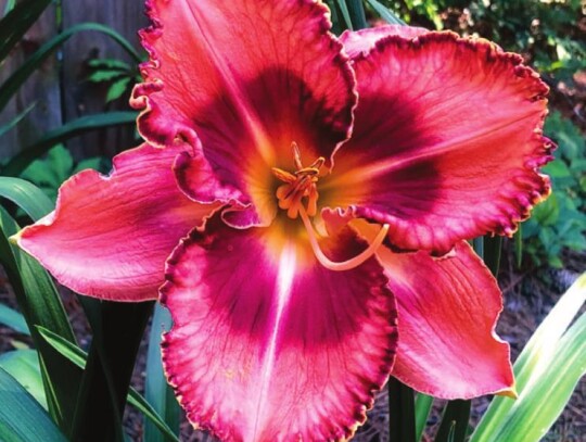This year, I added new Unplugged So Pink salvia which debuts next year along with Rockin salvias and some Truffula Pink gomphrena. I also added 10 more daylilies. They represent informal drifts of five each of Rainbow Rhythm King of the Ages and Rainbow Rhythm Lake of Fire. Both are like thoroughbred racehorses with tall big foliage, strong scapes or flower stalks and enormous blooms. My first bloom of 2021 was Lake of Fire.