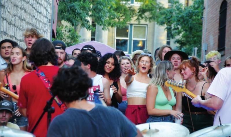 The Kissing Alley Concert Series made its return Thursday night, featuring local band Blevins. Thursday's event featured live music and local vendors at Kissing Alley, located at 121 E. Hopkins St. The event was sponsored by San Marcos Main Street Program, KZSM and Apogee Presents. Daily Record photos by Nick Castillo