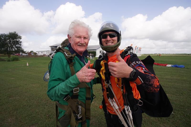 Clyde Schneider, a local Korean War veteran, jumped out of an airplane at Skydive Spaceland San Marcos on Saturday.