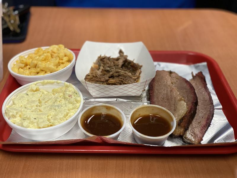 This San Marcos spot also has several sandwich selections, including a pulled pork sandwich, sliced sausage sandwich, chopped brisket sandwich and sliced brisket sandwich.
