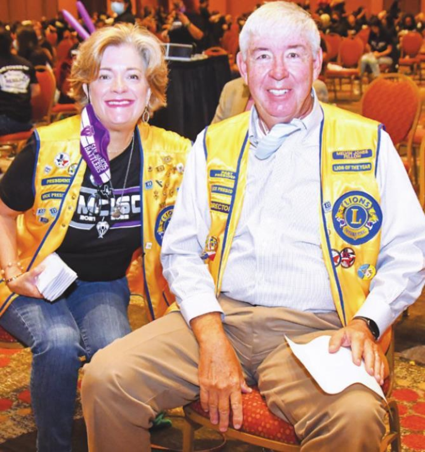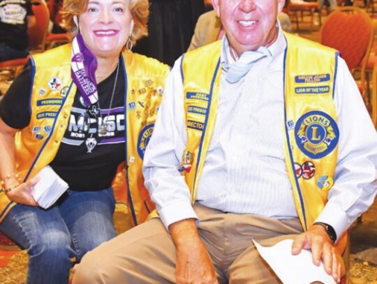 San Marcos Lions Club has given more than $170,000 total to nonprofits, including $45,000 in scholarship to graduating seniors. In 2019 the club gave away more than $350,000 to nonprofits. The Lions also gave $5,500 in $50 gift cards to teachers at San Marcos Consolidated ISD campuses. Above left, Lions Club President Dennis Gutierrez speaks to the crowd of SMCISD employees at convocation on Friday. Above middle, a group Lions club members pose for a photo Friday. Above right, Lions Club members Debbie Smith and Mitch Hoffman smile for a photo. Daily Record photos by Lance Winter