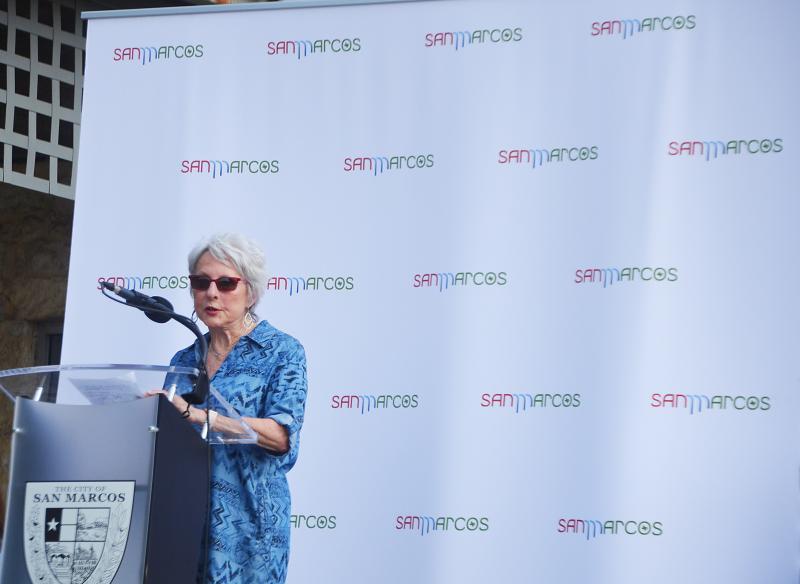 Above, Mayor Jane Hughson speaks at the City of San Marcos Mermaid Month kickoff event on Wednesday at San Marcos Rec Hall.