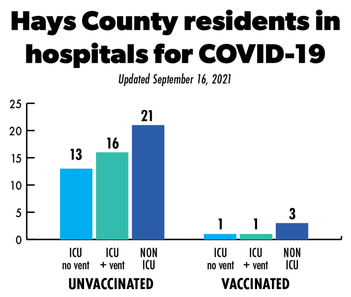 Fifty-five county residents are currently hospitalized by COVID-19 — 50 who are unvaccinated and five who are fully vaccinated, according to the local health department. The county stated that of the 50 citizens hospitalized who are unvaccinated, 21 are non-ICU patients, 16 are in the ICU and on a ventilator and 13 are in the ICU and not currently on a ventilator. Additionally, three patients who are fully vaccinated are not in the ICU, while one is in the ICU and on a ventilator and one is in the ICU and not on a ventilator. There have been 1,247 total hospitalizations as of Thursday.