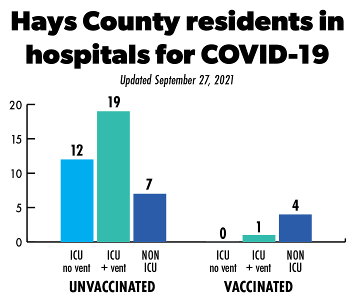 To make an appointment for a vaccine shot, visit https://www.haysinformed.com. From there you can use the new online scheduler to find a time and location that works best for you. According to the DSHS, 122,325 Hays County residents have been fully vaccinated against COVID-19 as of Friday, approximately 62.41% of 195,999 eligible residents who are 12 years or older. Additionally, 142,862 county residents have received at least one COVID-19 vaccine dose — 72.88% of the eligible population.