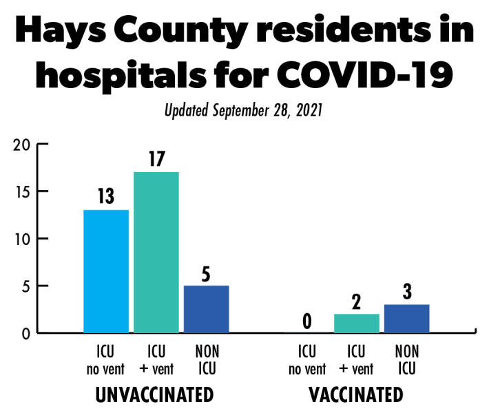 Forty county residents are currently hospitalized by COVID-19 — 35 who are unvaccinated and five who are fully vaccinated, according to the local health department. The county stated that of the 35 citizens hospitalized who are unvaccinated, 17 are in the ICU and on a ventilator, 13 are in the ICU and not currently on a ventilator and five are non-ICU patients. Additionally, three of the five residents who are hospitalized and fully vaccinated are currently non-ICU patients, while two are in the ICU and on a ventilator. There have been 1,292 total hospitalizations as of Tuesday.