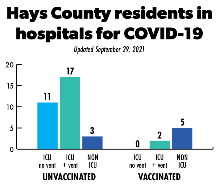 Thirty-eight county residents are currently hospitalized by COVID-19 — 31 who are unvaccinated and seven who are fully vaccinated, according to the local health department. The county stated that of the 35 citizens hospitalized who are unvaccinated, 17 are in the ICU and on a ventilator, 11 are in the ICU and not currently on a ventilator and three are non-ICU patients. Additionally, five of the seven residents who are hospitalized and fully vaccinated are currently non-ICU patients, while two are in the ICU and on a ventilator. There have been 1,294 total hospitalizations as of Wednesday.