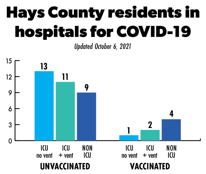 To make an appointment for a vaccine shot, visit https://www.haysinformed.com. From there you can use the new online scheduler to find a time and location that works best for you. According to the DSHS, 124,067 Hays County residents have been fully vaccinated against COVID-19 as of Wednesday, approximately 63.3% of 195,999 eligible residents who are 12 years or older. Additionally, 144,153 county residents have received at least one COVID-19 vaccine dose — 73.55% of the eligible population. DSHS data states that 6,516 county residents have received a COVID-19 booster shot.