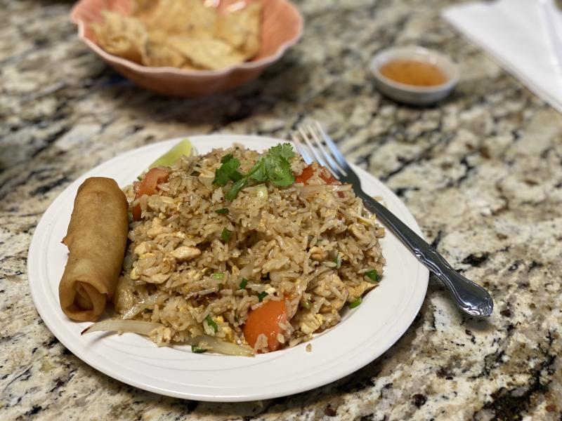 My dining companion, not very adventurous on this day, opted for a traditional fried rice dish with chicken. The stir-fried rice came with an egg, tomatoes, yellow and green onions. He added the protein, which was chicken, and was $8.99.