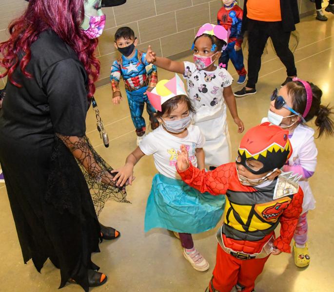Bonham Pre-Kindergarten students celebrated Halloween by dressing up as their favorite book and movie characters on Friday. Teachers guided the students on a parade through the halls. Daily Record photos by Lance Winter