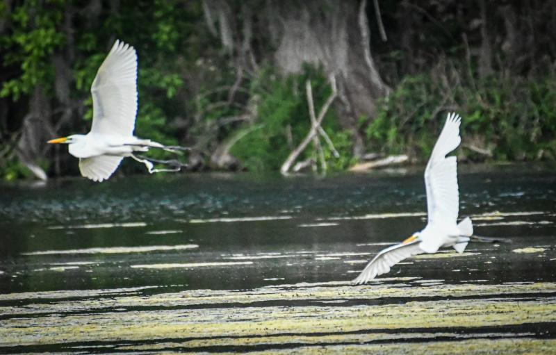 Above, two Great Egrets at Spring Lake on Wednesday.