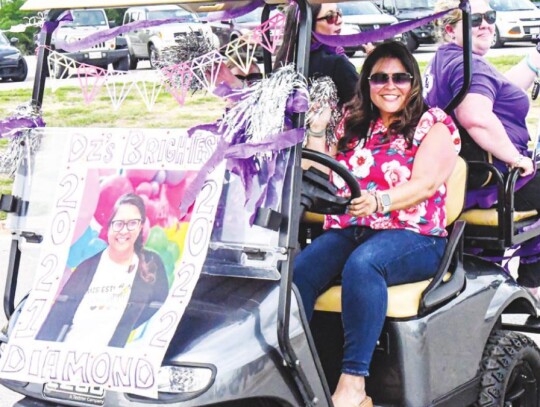 Cars decorated with banners and filled with family, friends, coworkers and students drove around San Marcos Toyota Rattler Stadium’s parking lot as the honorees watched.