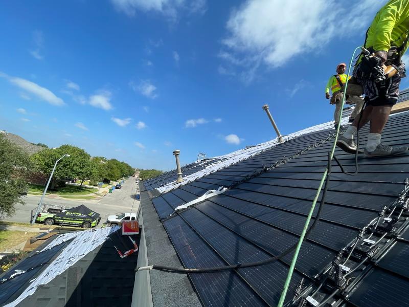 Above, a home with solar panels installed by Divided Sky Roofing and Solar. Divided Sky recently completed the largest Timberline solar roof of its kind in Texas. Photo courtesy of Divided Sky Roofing and Solar