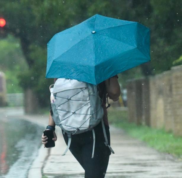 Pictured, Texas State students battle the rain, donning umbrellas and hoodies to stay dry on Tuesday.