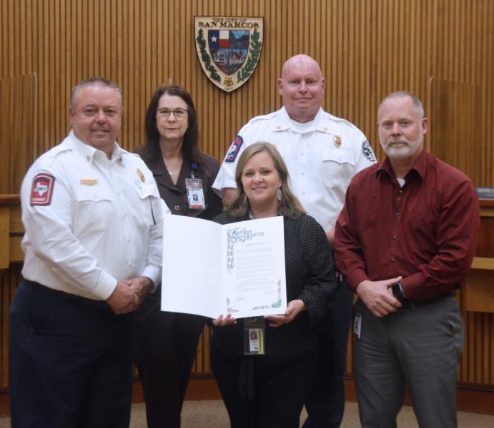 San Marcos Mayor Jane Hughson issued multiple proclamations on Sept. 6, recognizing Senior Volunteer of the Year, Jeannie Lewis; Hunger Action Month; 9/11 Remembrance Day; and Emergency Preparedness Month.