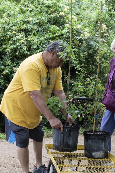 Albert Green sets down the second of the two oak trees he intends to purchase on his cart.