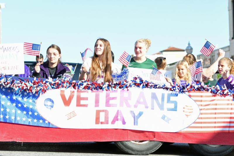 Above, the San Marcos High School JROTC presented the colors at the annual Veterans Day Parade.