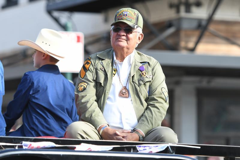 Above, a Purple Heart veteran takes part in Saturday’s parade.