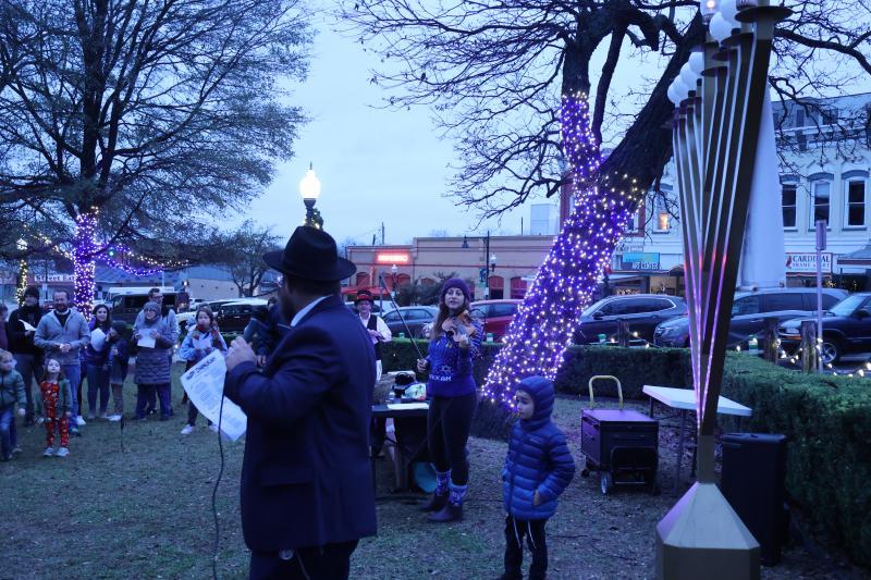 Chabad of San Marcos hosted a community menorah lighting at the Hays County Historic Courthouse lawn on the second night of Hanukkah. Hanukkah, which began on Sunday and ends on Monday, Dec. 26, celebrates the victory of the few against the many, the powerless over the mighty and the light over the darkness. Monday’s event included a ceremony with live music, a magic show by the astonishing Mr. Pitts and latkes and donuts.
