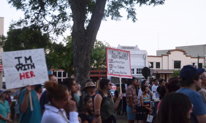 Abortion rights advocates gathered at the Hays County Historic Courthouse lawn on June 25, following the Supreme Court’s decision to overturn Roe v. Wade. In Texas, abortions will soon be illegal after the court’s decision. Daily Record photo by Nick Castillo