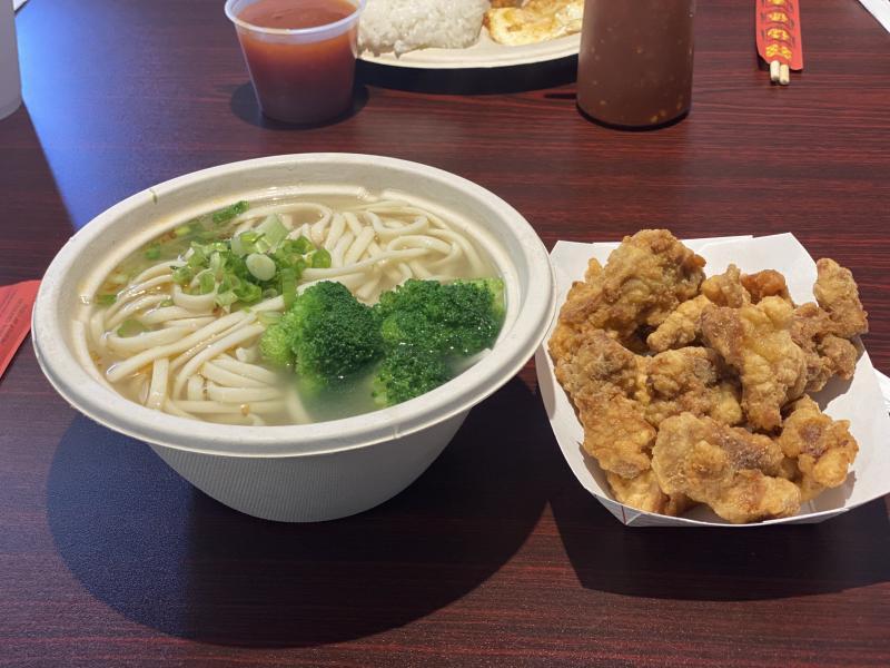 During our visit to Taiwan Bowl, I tried the restaurant’s crispy chicken with noodle soup ($11.50). This was an excellent choice. Despite the 100-degree heat on the day of our visit, this noodle soup was simple and excellent. The broth was savory, the noodles were just right — nice and soft — and the broccoli was fresh. The noodles combined with the crispy chicken served on the side made for a great lunch.