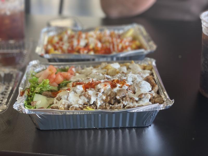 I went with a combination over rice ($10.99) and loaded French fries ($3.99). The combo over rice came with beef, lamb and chicken shawarma served with a side salad and topped with white sauce and hot sauce. The loaded fries came topped with white sauce, hot sauce and ketchup.