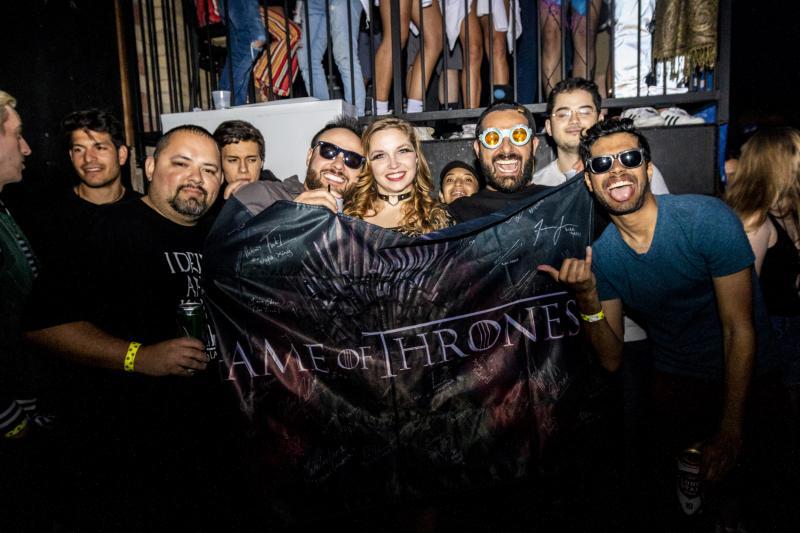 The club was decorated for the occasion, with banners representing houses from “Game of Thrones” hanging on the balconies. For a while there was a line of people who wanted to take photos sitting on the “Iron Throne” set up near the entrance to The Marc, but no wars started during the wait. And though Nairn’s set at The Marc was not one of his “Rave of Thrones” shows, he did treat the crowd to a dance mix of the “Game of Thrones” theme for part of his set.