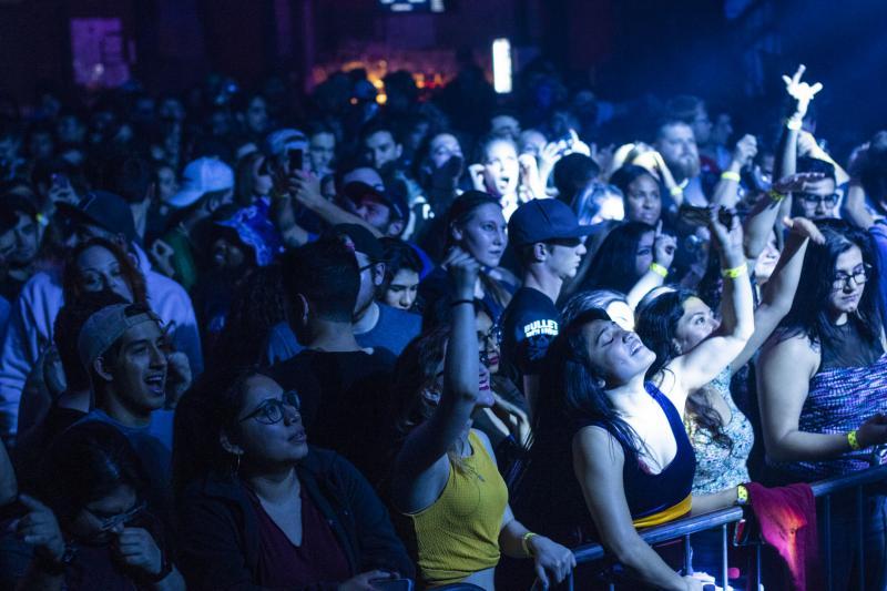 A crowd of fans packs the space in front of the railing during Nairn's set.