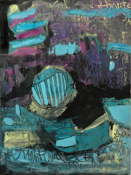 “The mixture of abstract and nonrepresentational imagery I produce is the artifact of my quest for understanding personal experiences, shared stories and internal conflict,” Villarreal said. “The process of pushing paint, scribbling phrases, and general mark making serves as a way to make something tangible out of the bits of story and internalized thoughts.”