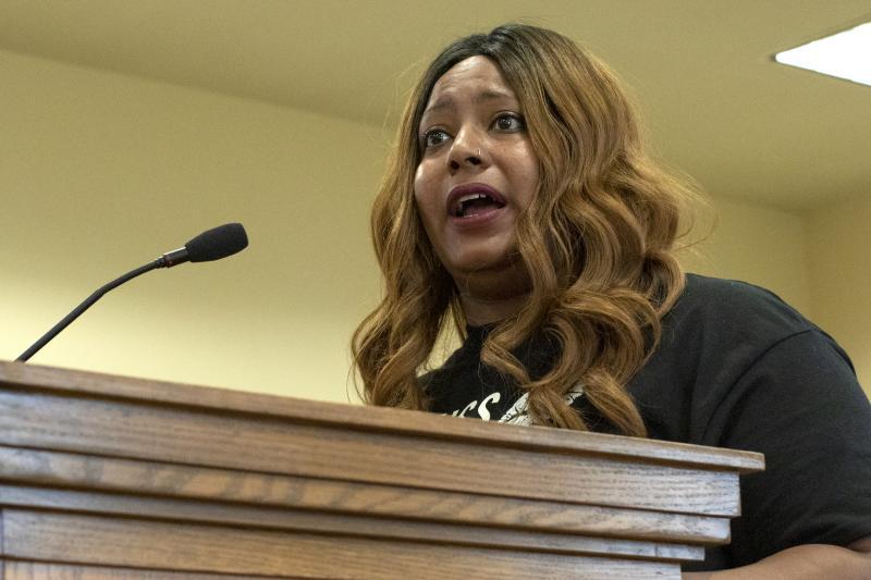 During the discussion in the court, Faylita Hicks takes the microphone to describe the 45 days she spent in pretrial detention at the Hays County Jail without access to a public defender.