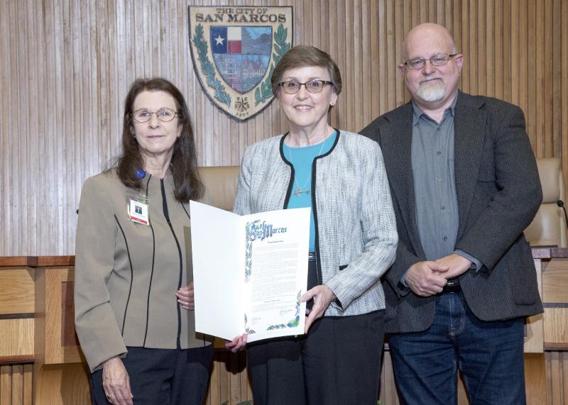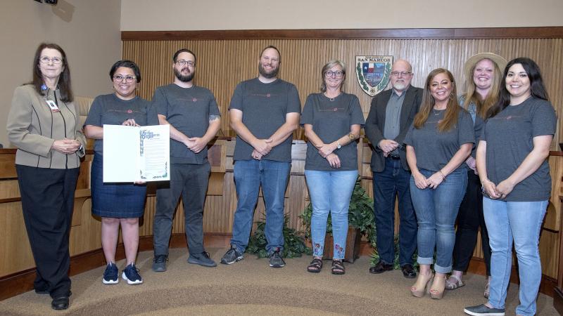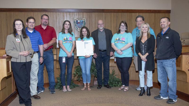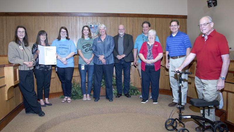 May 18 was “Kids To Parks Day in San Marcos.” From left to right are Mayor Jane Hughson, Drew Wells, Bert Stratemann, Christie Murillo, Catherine Marler, Dr. Ed Mihalkanin, Jennifer Mach, Nick Riali, Kristy Stark and Lane Supak.