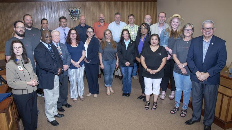 May 5-11 was Public Service Recognition Week. Front row from left to right are Mayor Jane Hughson, Lt. Oliver Johnson, Patrick Connally, Melinda Fotinos, Stephanie Vargas, Yvonne Palacios, Rachel Ingle, Mary Earls, Melinda Perez, Charlotte Wattigny, City Manager Bert Lumbreras. Back row from left to right is Steven Anderson, Clancy Hardin, Agent Greg Lewis, Jim Gibson, Aaron Crawford, Ted Groholske, Tyler Hjorth, Jeff Caldwell, Dr. Ed Mihalkanin, Mike Sturm and Sarah Smith.