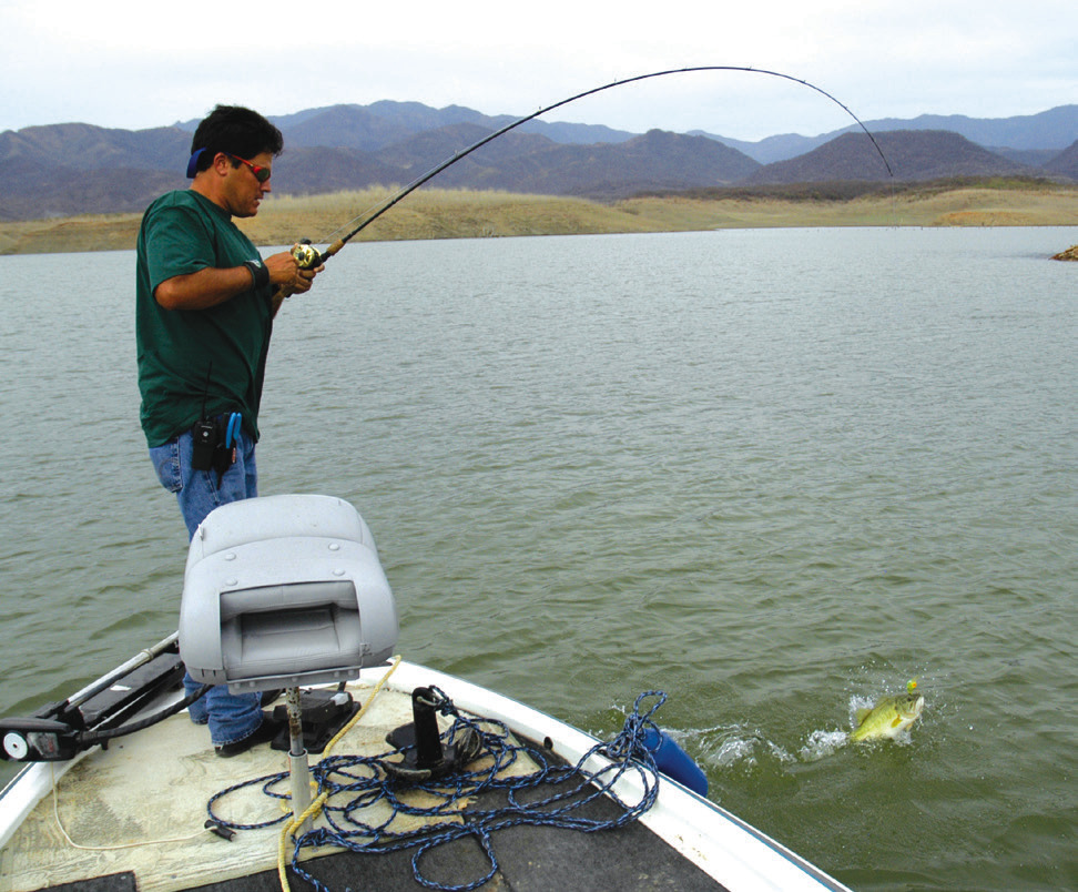 Wham! The line jumped slack and the rod bowed double. Then Boatman’s. Then Salazar’s. Roughly 30 minutes later the three of us had boated close to 40 bass, most of them in the 3-5 pound range.
