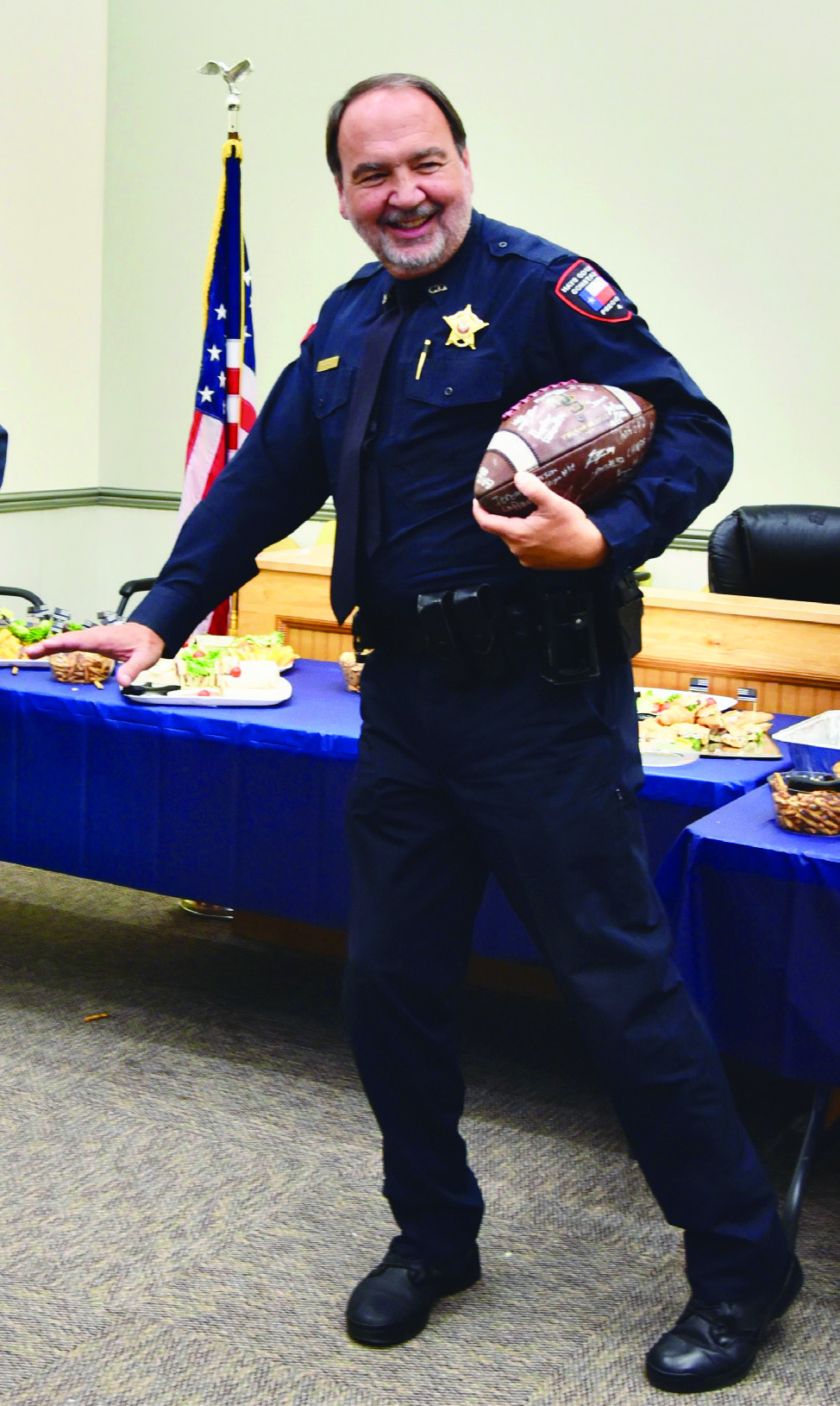 Hood also received an award by Gregory Stevens, Executive Director of the Texas Commission on Law Enforcement (TCOLE), for his 12-year service as a commissioner with TCOLE; and a football signed by all the members of the DSHS football team.
