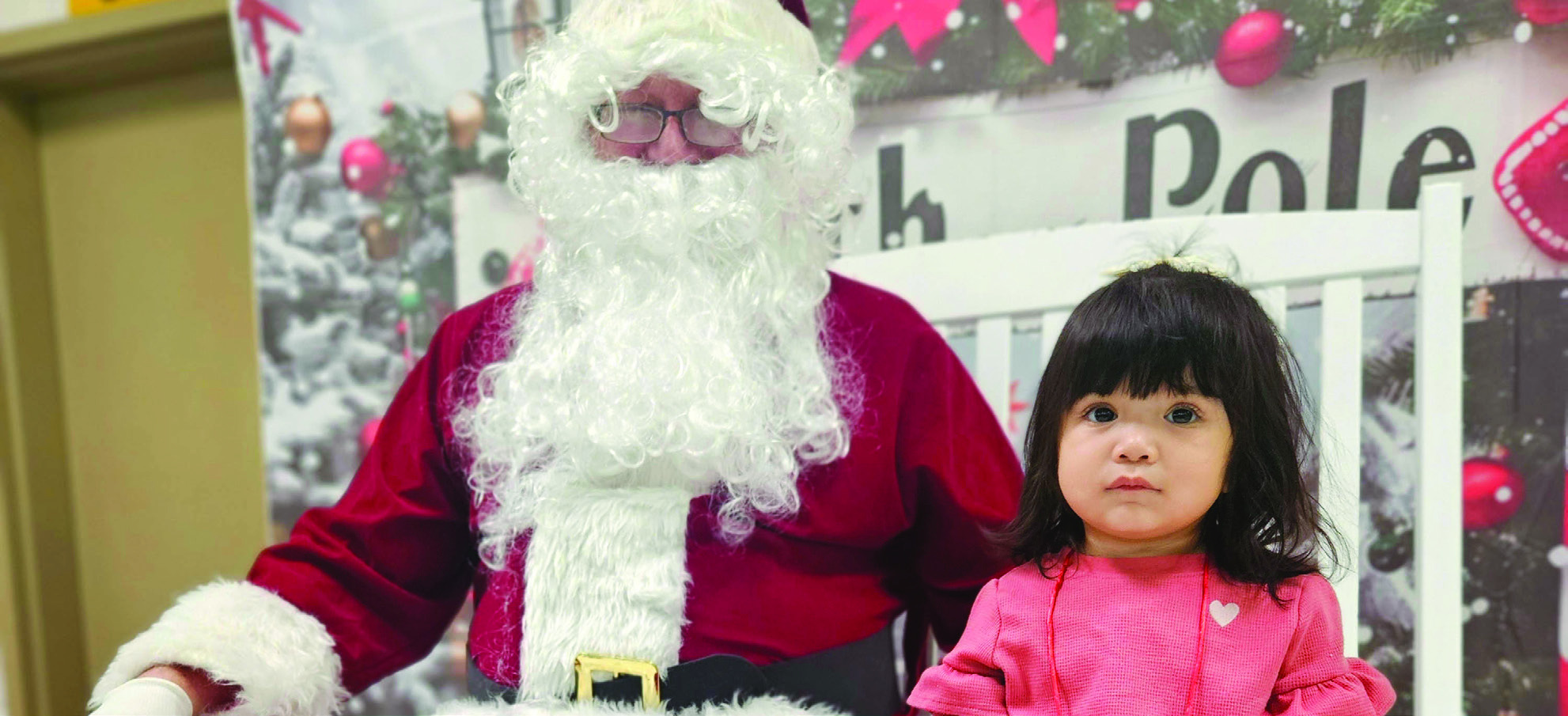 Mia Patino sits with Santa Claus. Daily Record photo by Dalton Sweat