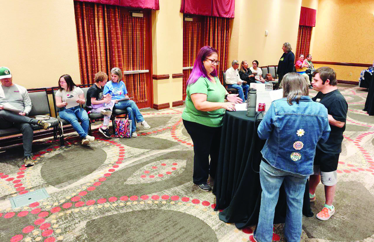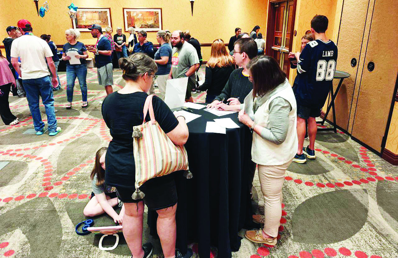 Above, Nick Rodriguez, Matthew Weiser, Bruce Williams, Travis Hallman, Carter Cawley. All below, Guests of the event filling forms to join the Special Olympics delegation project. Photos courtesy of Elizabeth Kulchytska