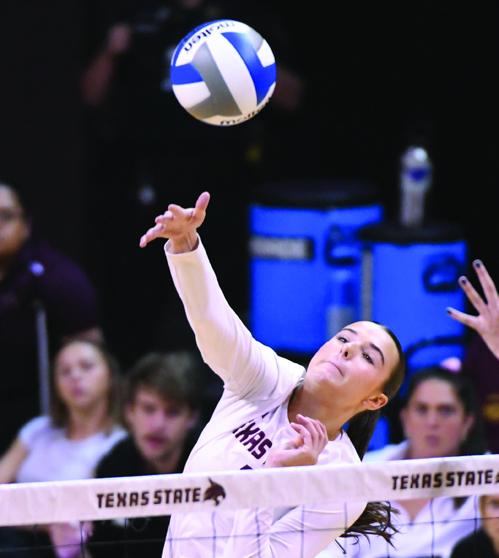 Texas State defeated Arkansas State 3-0 [25-18, 25-23, 25-10] to win their
