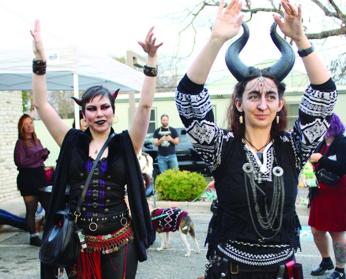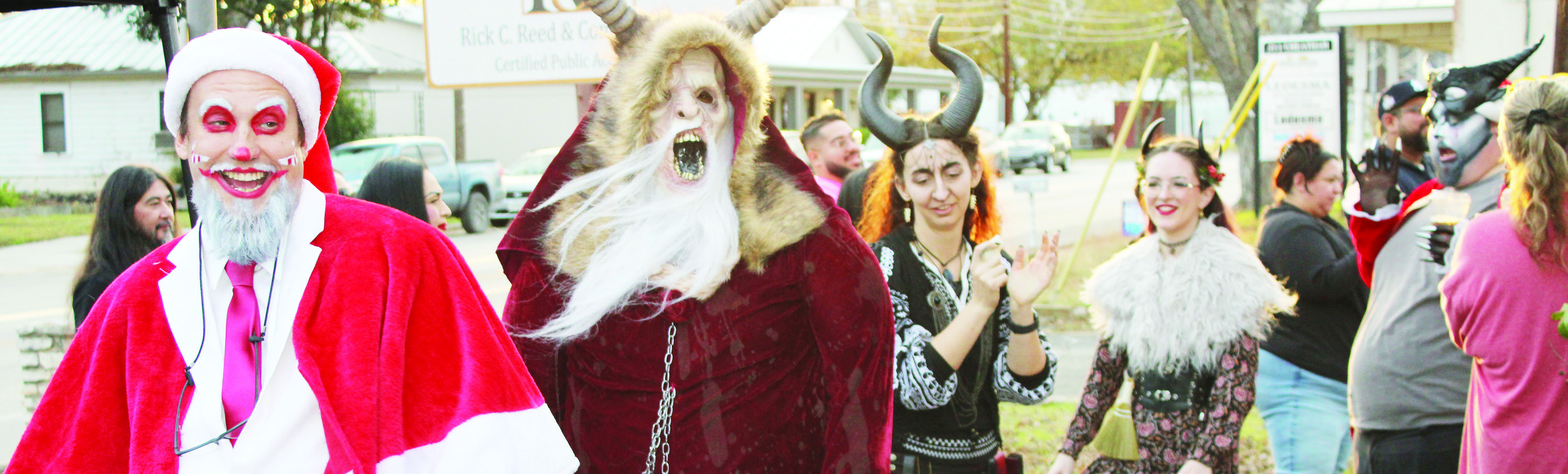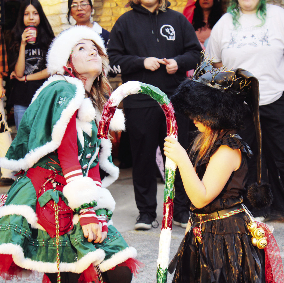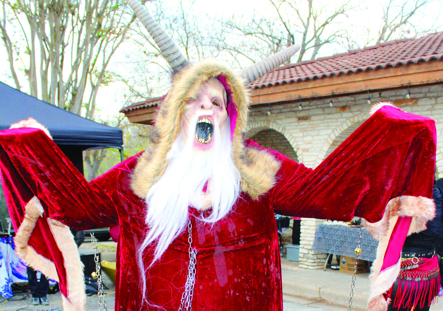 Triple Six Social hosted a Krampus Celebration last week complete with a costume contest, live music and vendors. According to the Britannica website, Krampus is a central European legend, which is part goat and part demon and punishes misbehaving children at Christmastime. Krampus is the counterpart to St. Nicholas who is believed to have originated in Germany. His name is derived from the German word Krampen, which means claw. Above, Krampus, Taz Sevaus, picks up an elf, Ivy Sevaus, to check the bottom of her shoes to make sure she hadn’t been marked as naughty. Below left, Austin Allen, who does local drag under the name Quizabella, during the costume contest. Below right, Danika and Fin Randall participated in the costume contest. Daily Record photos by Shannon West | SEE MORE KRAMPUS CELEBRATION PHOTOS ON PAGE 5A