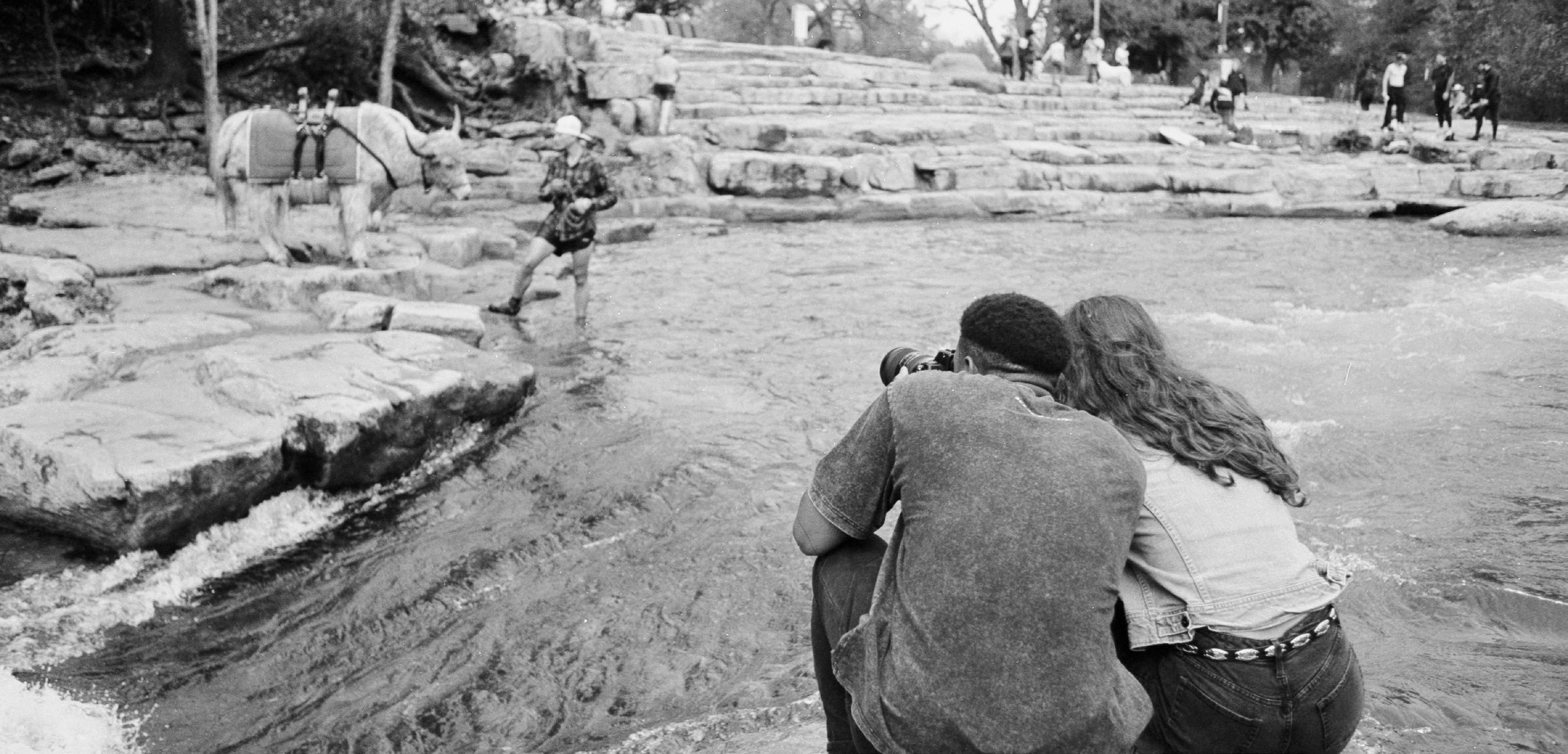 Meggie Emerick of Lago Vista Film Lab made her dream of a lo- cal photo club a reality the day her coworker Madelyn Krueger was hired. In order to get to know each other more they took an impromptu photo walk around campus on Halloween day in search of students in costume. Joined by some local photographers they took to the quad, camera in hand.