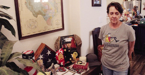 She keeps the bracelet on a shelf in the memorial she made for her son.