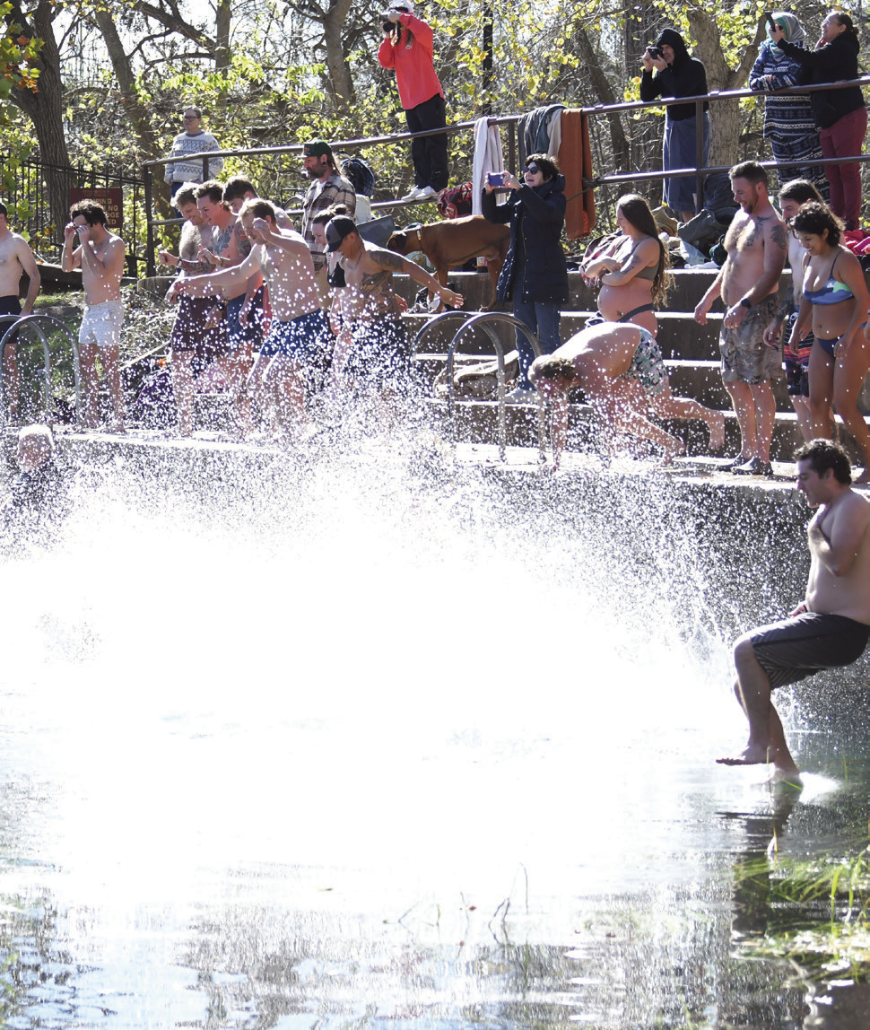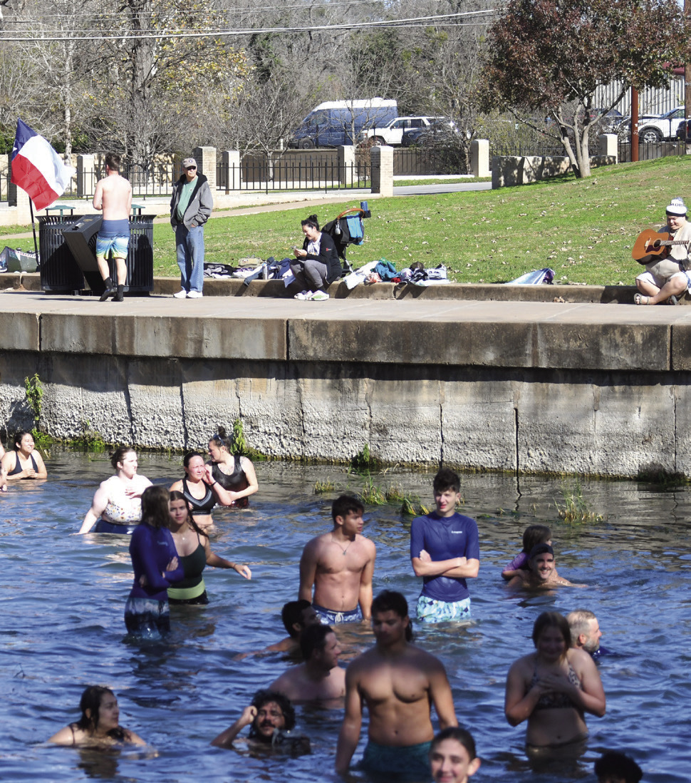 What better way to start the New Year off right than with an ice-cold jump into the San Marcos River, the city’s most treasured asset. The Polar Bear Plunge is an annual tradition that occurs on Jan. 1 that draws both San Marcans and out-oftowners to take the leap together. According to Women’s Health Magazine, the benefits of a polar plunge are plentiful. The sudden change of temperature can kickstart biological processes that lead to improved athletic performance, increased metabolism, increased energy, reduced muscle soreness, a better stress response and an elevated mood.