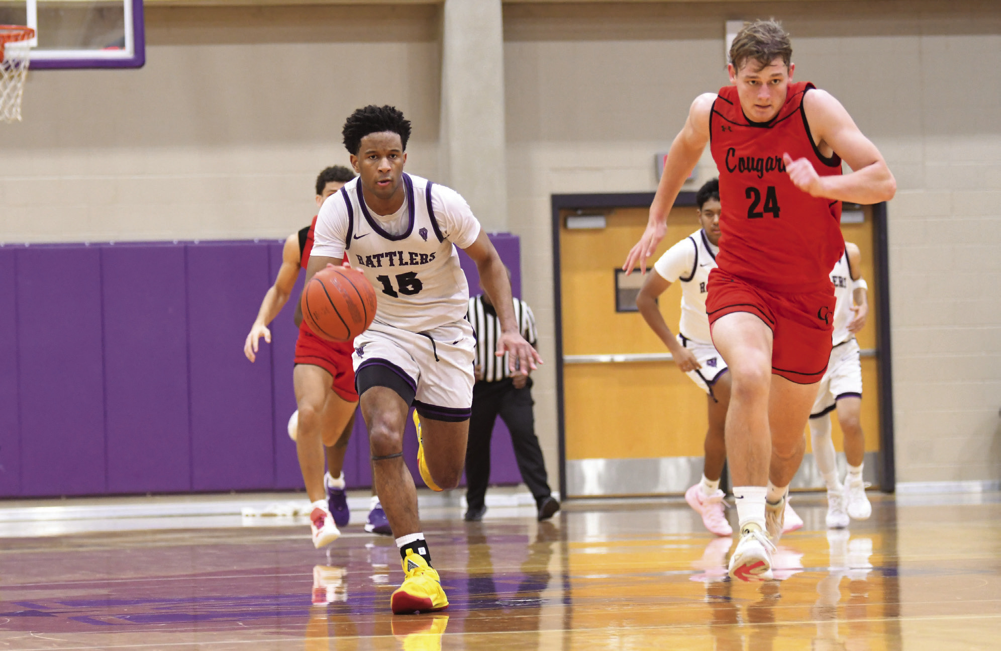 Senior Josiah Hollmon drives down the court in the Rattlers home game against New Braunfels Canyon. Daily Record photo by Gerald Castillo